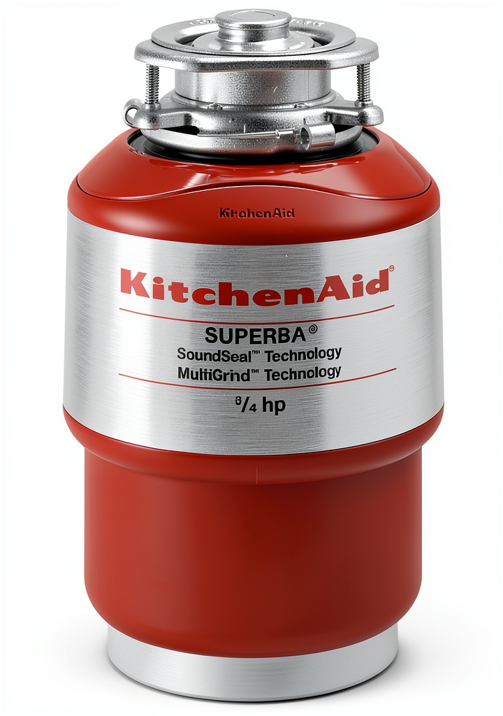 The KitchenAid garbage disposal is a high-performance appliance designed for residential kitchens, featuring a robust 3/4 HP motor that operates at 1,725 RPM for efficient grinding. With SoundSeal Plus technology, it incorporates four advanced components to minimize noise during use, ensuring a quieter kitchen environment. The disposal includes corrosion-resistant grind and drain chambers, enhancing longevity and reliability. Measuring 13.5 x 10 x 19.61 inches and weighing 19.62 pounds, it fits standard sink setups and comes in a vibrant red color. This model, W10156761, replaces KCDS075TA and is backed by a one-year warranty, reflecting KitchenAid’s commitment to quality and durability.