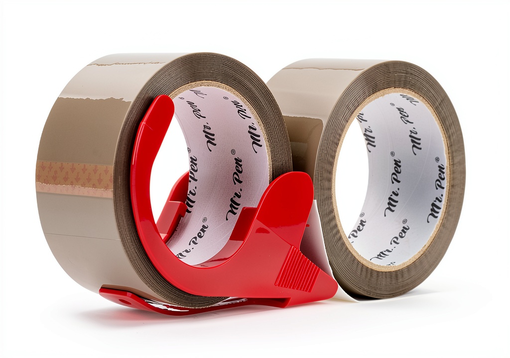 Mr Pen brown packing tape is crafted from durable polyethylene and polypropylene materials, ensuring reliable performance for all your packaging needs. Each roll measures 2 inches wide with a 3-inch core, and the tape features strong adhesion and water resistance to keep contents secure during transit or storage. The set includes a sturdy red dispenser gun with a sharp cutting edge for smooth, precise application. With options for 2-pack or 6-pack configurations, this tape is versatile for sealing cardboard boxes, making it a must-have for personal and commercial use.